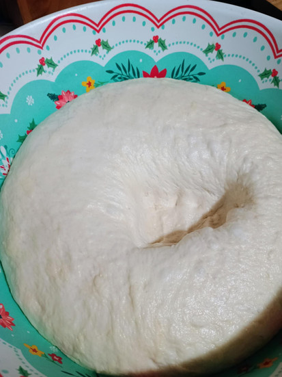 4. Shape the Loaves: Once risen, punch the dough down. Turn it out onto a surface and divide it into two equal parts. Flatten each piece gently to remove air bubbles, then roll into a log shape.